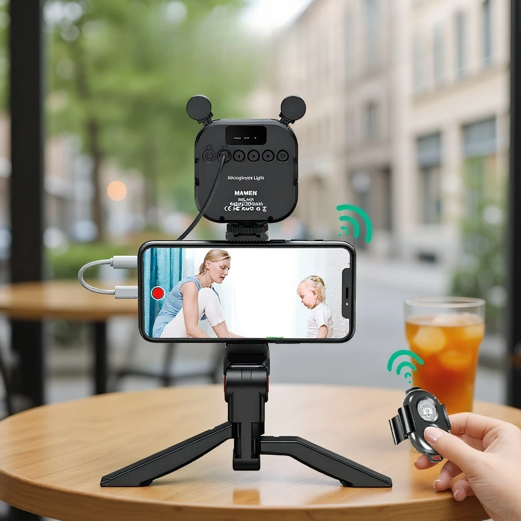 MAMEN Vlogging Kit Video Record Toolkit with Monitoring Microphone LED Fill Light for Smartphone SLR Camera for Live YouTube