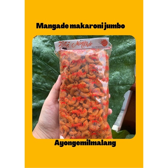 Makaroni mangade kemasan jumbo berat kurang lebih 200 gram tersedia dua varian lada(pedas) lada pisan (pedas sekali) cocok untuk stock cemilan di rumah