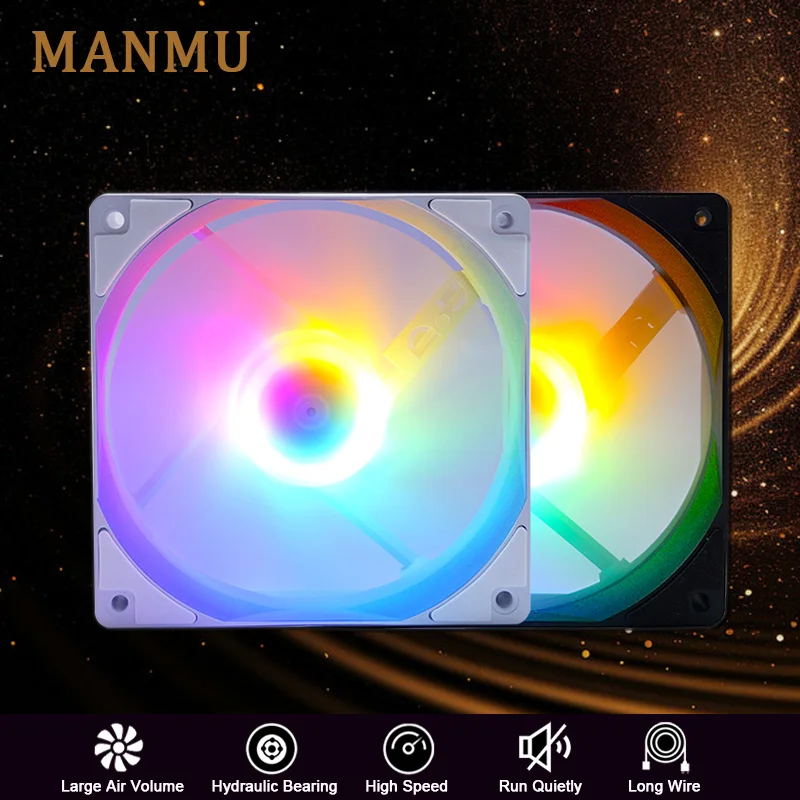 MANMU High Performance Quiet Computer Fan 120mm Rgb Fan Computer Case White Led Rainbow Fan
