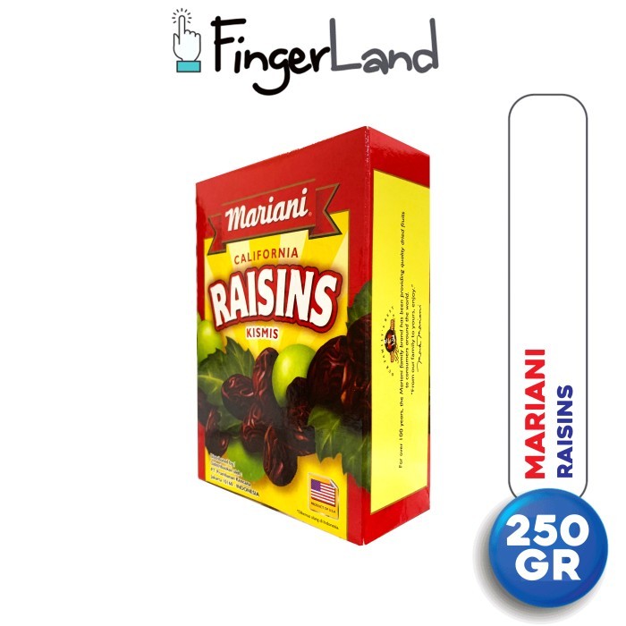 Tumbuh di bah sinar matahari California, kismis Mariani bebas lemak jenuh. Kismis yang lezat ini tidak dunakan untuk bahan olahan, tapi bisa dimakan langsung. Gunakan untuk menaburkan sereal atau salad, tambahkan ke resep favorit, atau sebagai camilan sehat saat bepergian.