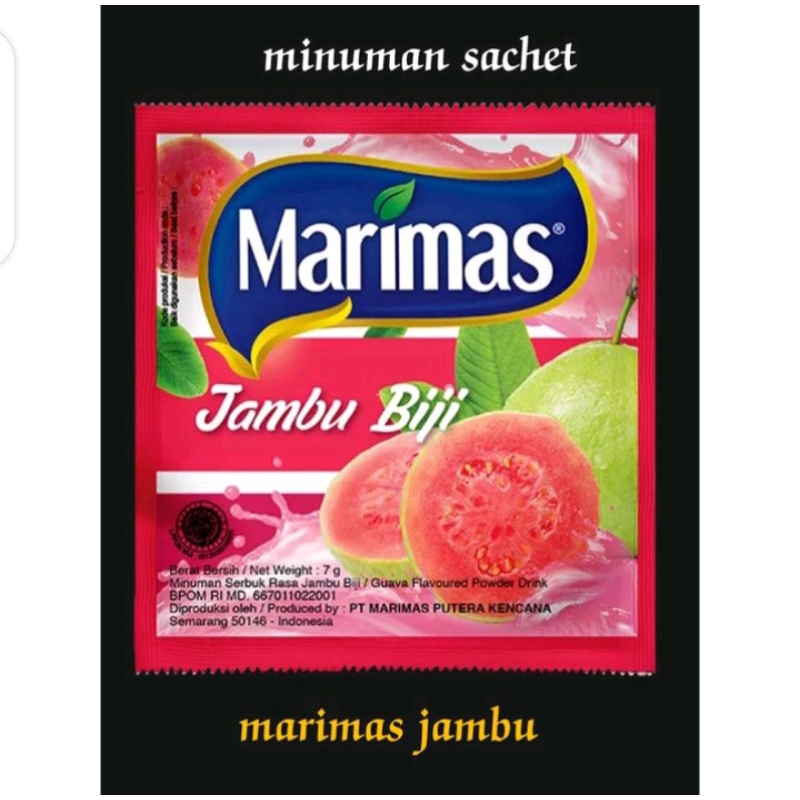 -Marimas Sebagai Brand Produk Dari PT. Marimas Putera Kencana Merupakan Minuman Serbuk Rasa Buah Yang Memiliki Banyak Varian Rasa. Marimas Sudah Eksis Menemani Kita Semua Sejak Tahun 1995.- 1 Saset rasa jambu
