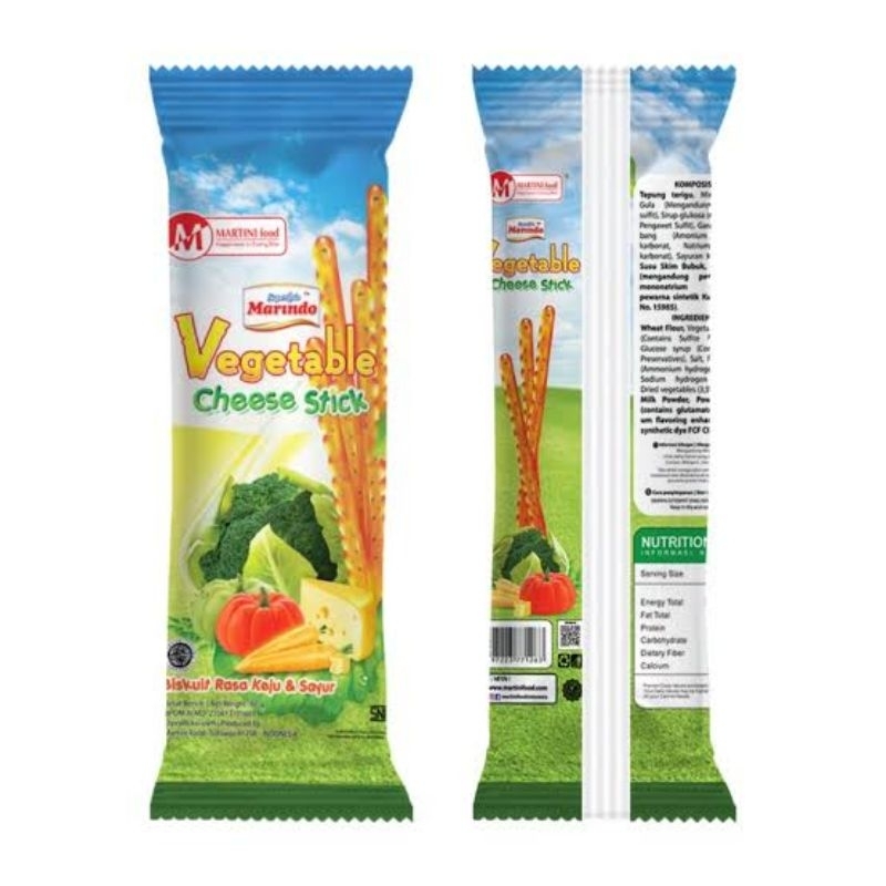 MARINDO BISKUIT VEGETABLE CHEESE STICK BISKUIT RASA KEJU SAYUR NETTO 5 PCS X 60 GR