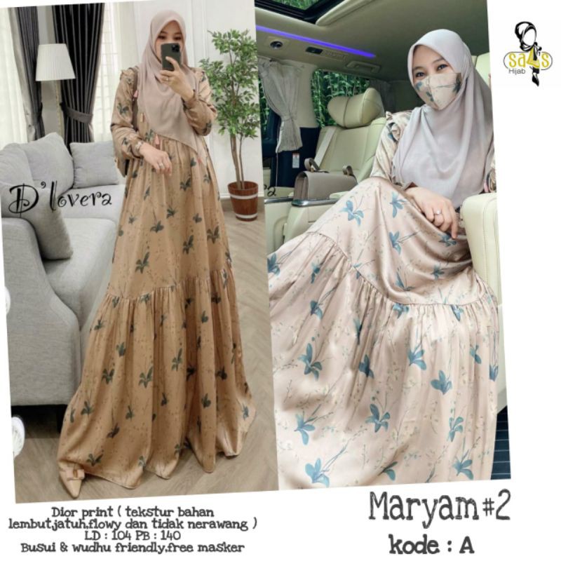 dress maryam #2 dior print tekstur bahan lembut jatuh dan tidak nerawang ld 104 pj 140 free masker.