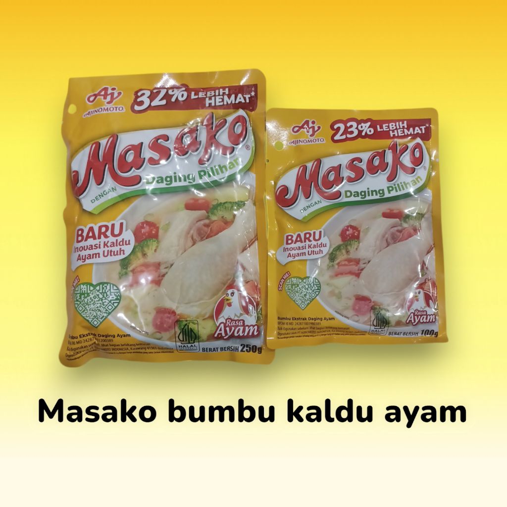 Masako bumbu kaldu ayam adalah penyedap rasa berbentuk bubuk yang terbuat dari ekstrak daging ayam pilihan, bumbu, dan rempah-rempah, yang dirancang untuk memberikan rasa kaldu ayam yang kuat dan gurih pada masakan, mirip dengan kaldu ayam buatan sendiri. Masako Ayam juga mengandung garam yang cukup, sehingga dapat mengurangi penggunaan garam tambahan dalam masakan.