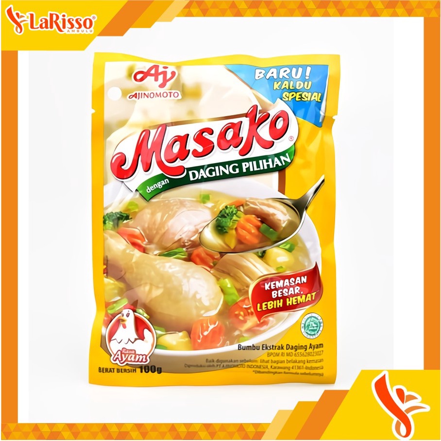 Masako Bumbu Kaldu Penyedap dibuat dengan perpaduan sempurna antara daging segar berkualitas, bumbu dan rempah pilihan. Sehingga secara praktis menyempurnakan kelezatan masakan Anda sehari-hari dengan rasa dan aroma dari daging asli sama seperti kaldu buatan di rumah.