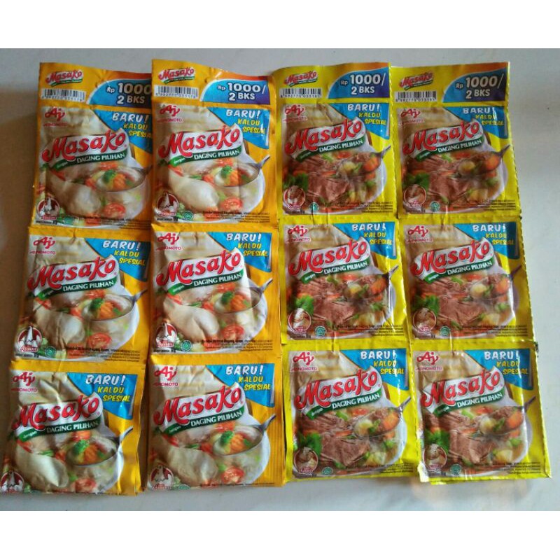 Masako merupakan penyedap rasa dengan daging pilihan dan aneka rempah indonesia membuat masakan menghasilkan aroma dan rasa kaldu yang enak seperti buatan rumahan.Masako mempunyai 2 varian yaitu masako ayam dan sapi dengan berat bersih 9g per sachet.