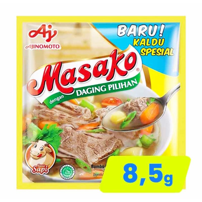 MASAKO Penyedap rasa Sapi isi 8.5 gram per sachet.