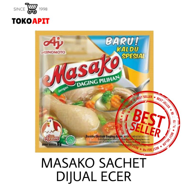MASAKO SACHET 9 GRAM DIJUAL ECER,SANGAT COCOK DI CAMPURKAN KE BERBAGAI MACAM MAKANAN.