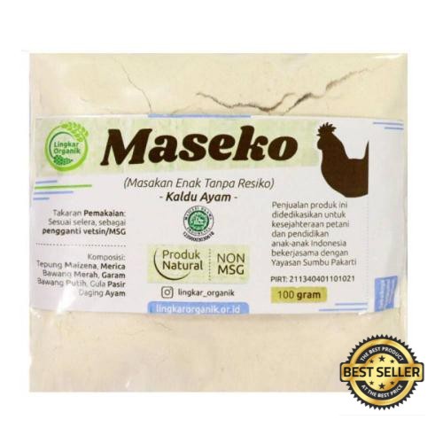 Maseko (Masakan Enak Bebas Resiko) dibuat dari bahan-bahan alami, bebas MSG (sudah dilakukan pengijian laboratorium) sehingga aman untuk menjadi penyedap makanan dan MPASI bayi.