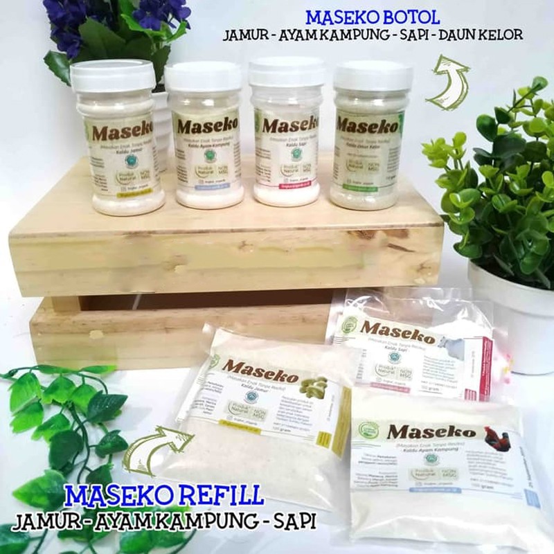Maseko (Masakan Enak Bebas Resiko) dibuat dari bahan-bahan alami, bebas MSG (sudah dilakukan pengijian laboratorium). Digunakan sebagai pengganti vetsin/penyedap rasa, dengan takaran sesuai selera. Maseko hadir dengan 3 jenis Maseko ayam kampung, Maseko sapi dan Maseko jamur dengan kemasan sachet/refill 100 gram.