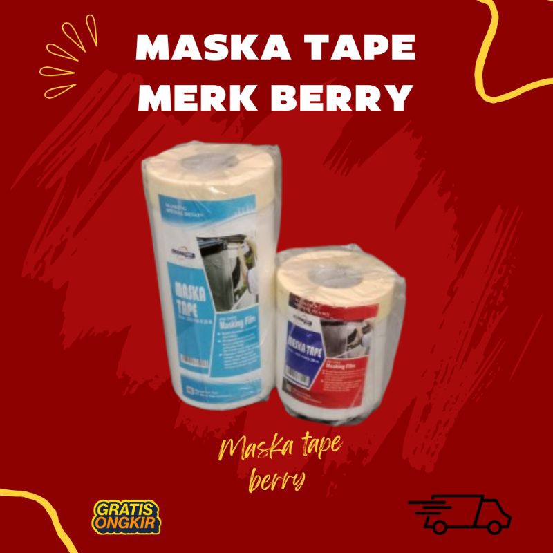 Maska Tape Berry adalah jenis masking tape (isolasi kertas) yang dilengkapi dengan lapisan plastik transparan untuk melindungi area yang tidak ingin terkena cat atau pelapis lainnya selama proses pengecatan atau renovasi. Fungsi utamanya adalah sebagai penutup sementara untuk melindungi permukaan dari debu, cat, atau cairan lain, serta mempermudah proses pengecatan dengan garis yang rapi.