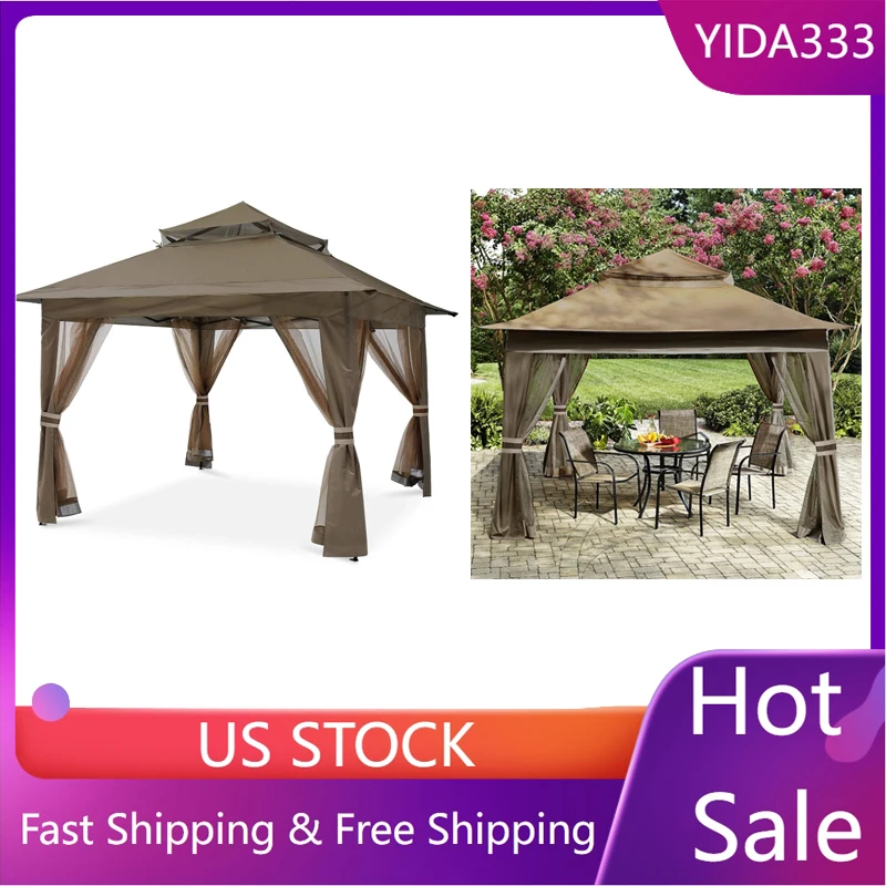 MASTERCANOPY патио беседка уличная беседка с сетчатыми стенами (13x13 коричневый)