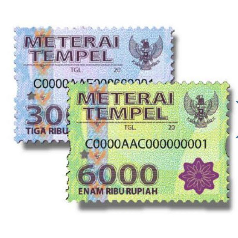 1. Meterai tempel desain baru dengan nominal Rp3.000 memiliki warna biru, sedangkan nominal Rp6.000 memiliki warna hijau