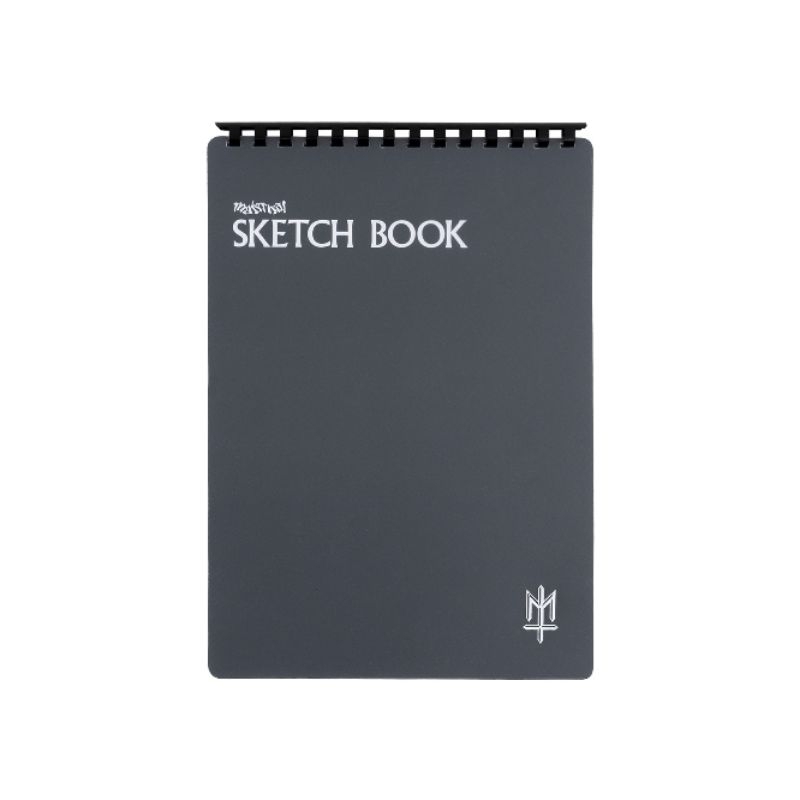 White 200 gsm paper with smooth surface sketch book, black art paper and transparent PVC cover with white ink screen print.