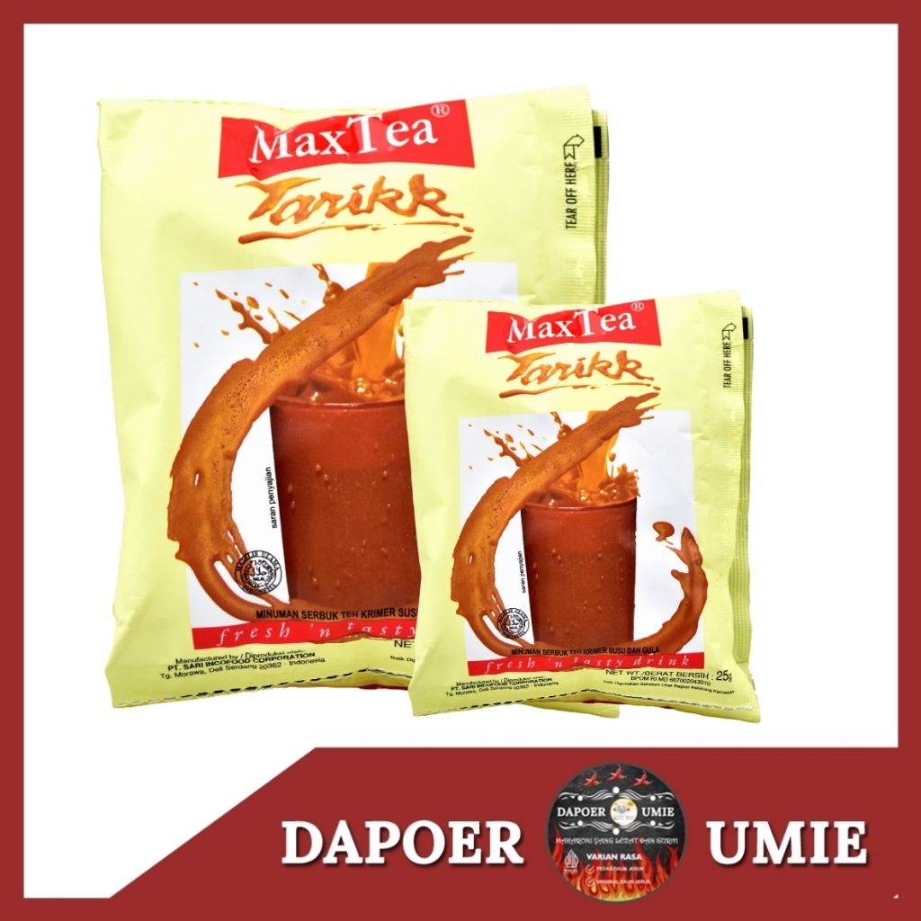 Nikmati sensasi teh tarik ala kedai minuman dengan MaxTea Teh Tarik. Perpaduan teh berkualitas dan susu bubuk yang creamy menciptakan rasa manis gurih yang pas, dengan aroma harum khas teh tarik. Praktis disajikan, bisa dinikmati panas atau dingin, cocok untuk menemani waktu santai.