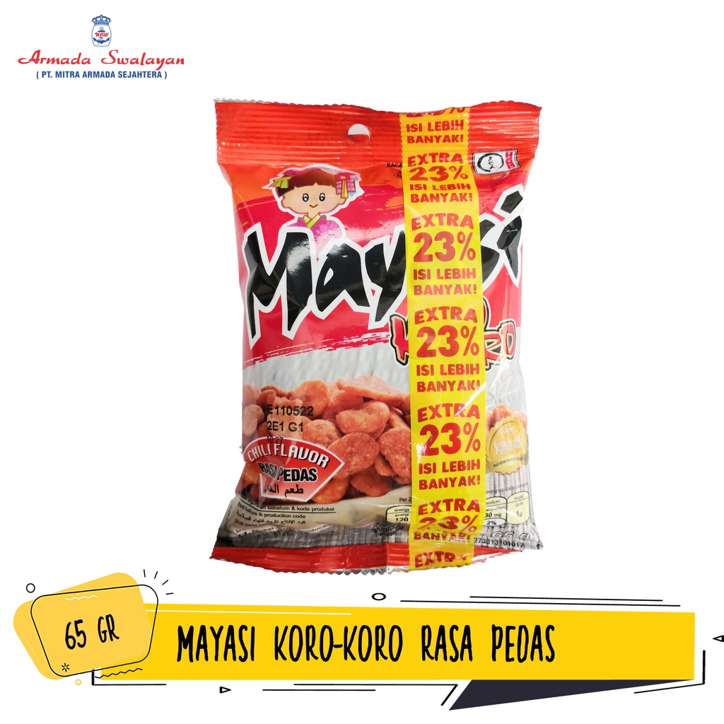 Snack koro-koro dari Mayasi yang ideal untuk menjadi teman saat santai atau kumpul seru.. Rasa pedas yang bikin nagih berpadu sempurna dengan tekstur koro yang renyah sehingga menghadirkan sensasi istimewa di lidah Anda. Tersedia dalam kemasan pack 65g yang praktis dibawa dan dinikmati kapan dan di mana saja. Ceriakan suasana santai dan kumpul seru Anda dengan Mayasi Koro-Koro Rasa Pedas.