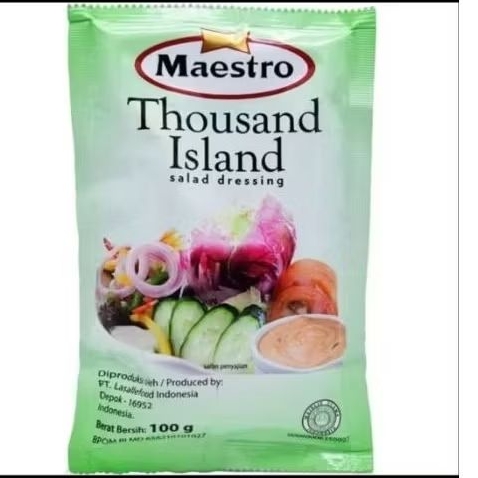 Thousand Island adalah saus salad yang terbuat dari mayones, saus tomat, dan acar cincang. Saus ini memiliki rasa gurih, manis, asam, dan sedikit pedas. Berikut adalah beberapa deskripsi mengenai Thousand Island: