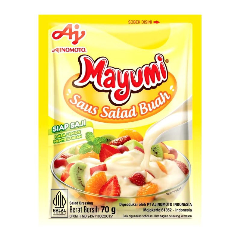 Mayumi Saus Salad Buah 70 g merupakan pilihan sempurna bagi pecinta salad buah yang menginginkan kesegaran dan kelezatan dalam satu saus dressing. Dibuat khusus untuk salad buah, saus ini sangat praktis digunakan; tanpa perlu menambahkan bahan lain, cukup tuangkan dan campur dengan potongan buah untuk menghasilkan salad buah yang manis dan creamy dengan sentuhan lemon yang menyegarkan. Kombinasi rasa manis-creamy yang dipadu dengan kelezatan lemon yang menghadirkan pengalaman makan buah yang lebih seru dan bernutrisi setiap harinya bersama Mayumi Saus Salad Buah 70 g.