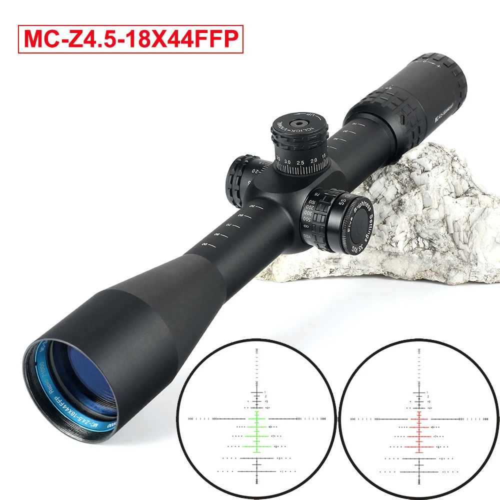 MC-Z 4.5-18X44 FFP Optical Sight Glass Etched Reticle Hunting Riflescope Turrets Lock Reset Side Wheel Focus Rifle Scope