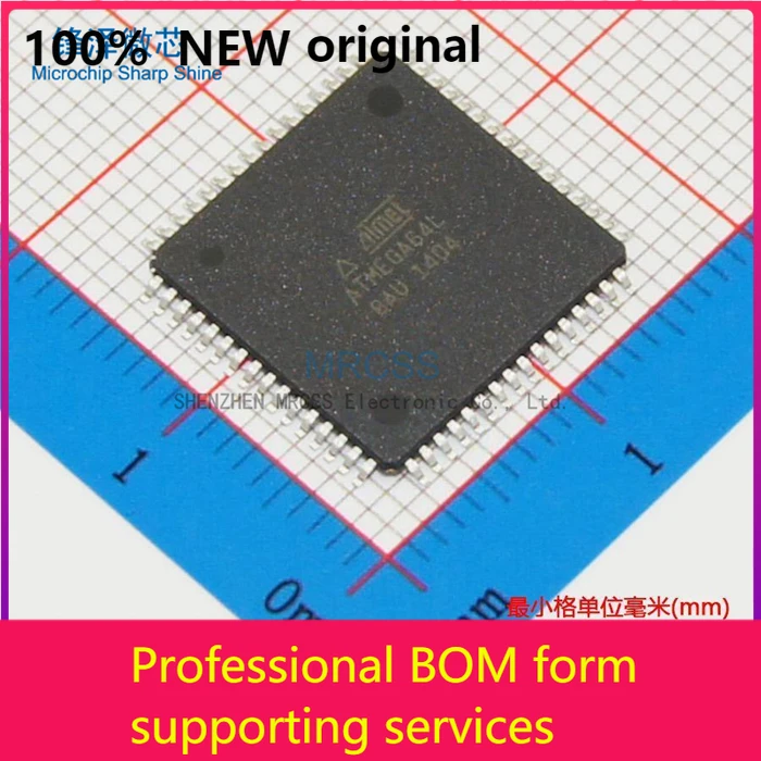 MCU 8-битный ATmega AVR RISC 64KB Flash 3,3 V/5V 64-контактный TQFP T/R - Tape и Катушка стандарта 100% оригинал