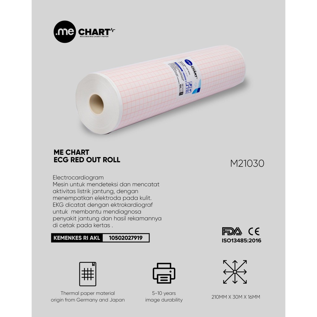 ME CHART ECG RED OUT ROLL 210MM X 30M X 16MM
