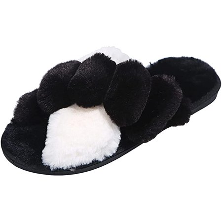 PIKADINGNIS Women s Open Toe Cross Band Slippers Soft Plush Furry Cozy House Shoes Indoor Outdoor Faux Fur Warm Comfy Slip On Slippers
