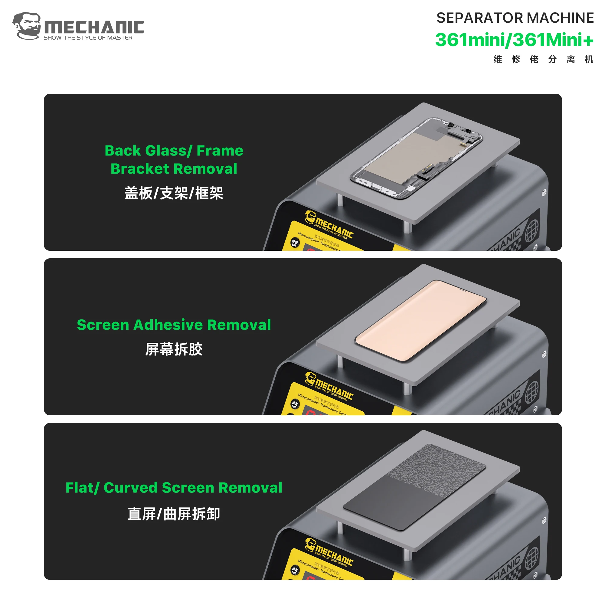 MECHANIC 361Mini 361Mini+ Phone Screen Separator Machine 200W Vacuum Adsorption 4 Level Temperature Control Back Glass Removal