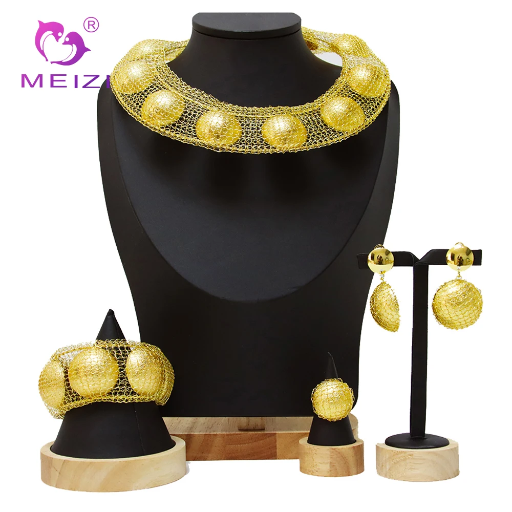 MEIZI ювелирные изделия из Дубая, покрытые золотом, высокое качество, бриллиант, дорого, 18k, золотое ожерелье, серьги, браслет, кольцо, набор