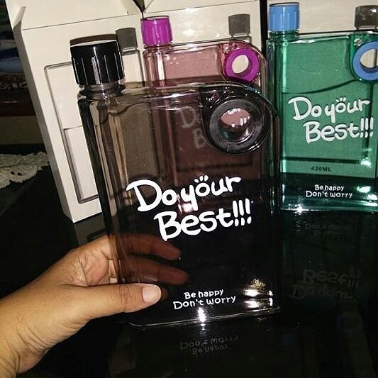 Memo bottle "DO YOUR BEST" Ringan sangat mudah dibawa kemanapun dan bisa di simpan di tas dgn isi / muatan terbatas , karena sangat simple bentuknya