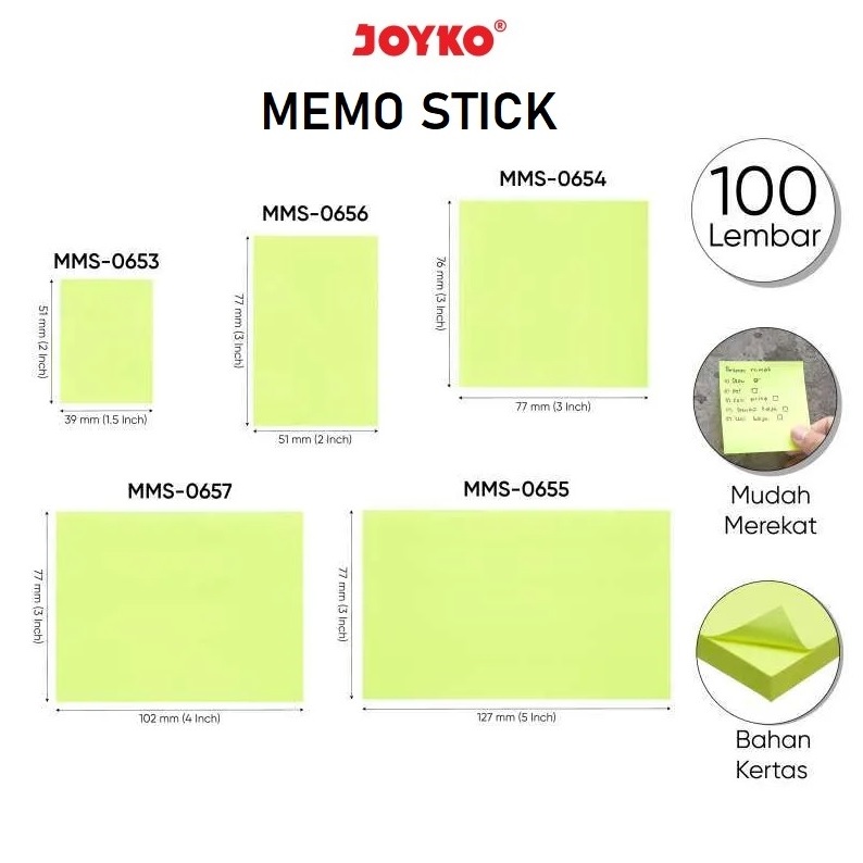 Memo Stick atau lebih di kenal Sticky note ini biasa digunakan untuk menulis catatan pengingat dan dapat di tempel karena memiliki lem di bagian atas kertas.