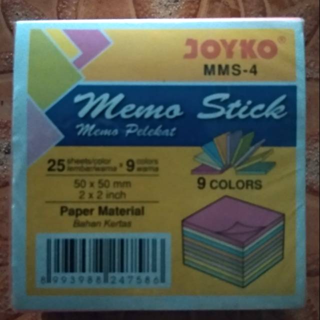 Memo Stick Joyko MMS-4 ukuran 50 x 50 mm 9 warna isi 25 Sheets/pack