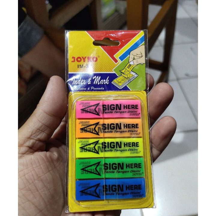 Pembatas dan penanda melekat pada bagian yang penting untuk ditanda tangani dan dapat dilepas dgn mudah tanpa merusak kertas.