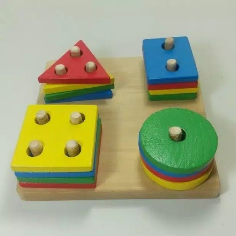 Keterangan : Mainan edukatif untuk menstimulan aspek perkembangan kognitif dengan pengenalan geometri dan meletakkan geometri sesuai tempatnya.