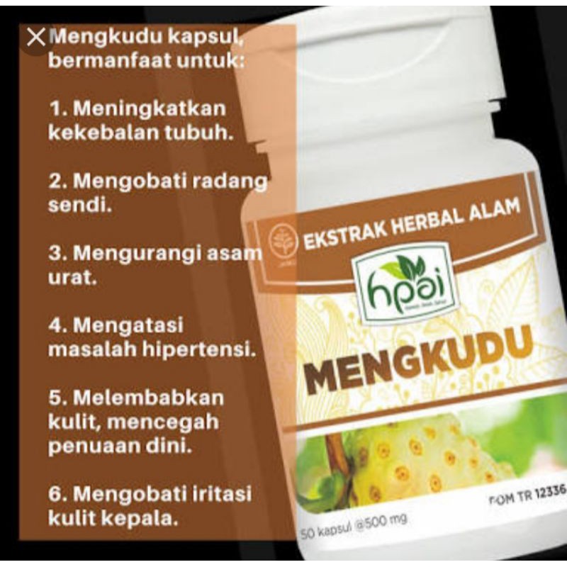 MENGKUDU KAPSUL HNI-HPAI herba yang terbuat dari buah mengkudu pilihan yang mempunyai khasiat meringankan gejala tekanan darah tinggi hipertensi.
