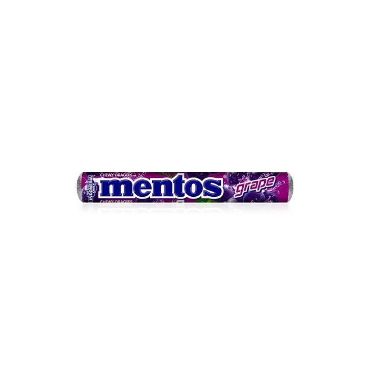 Mentos Chewy Dragees Grape Roll 37g adalah permen empuk dengan varian rasa anggur. Permen ini enak terutama untuk kamu pecinta anggur. Permen Mentos Chewy Dragees Grape Roll wajib kamu miliki untuk cemilan sore ataupun kapanpun kamu mau.