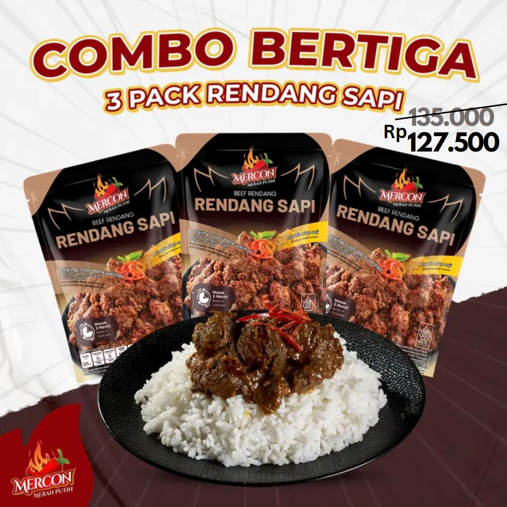 MERCON MERAH PUTIH HEMAT COMBO BERTIGA RENDANG SAPI 3 PACK