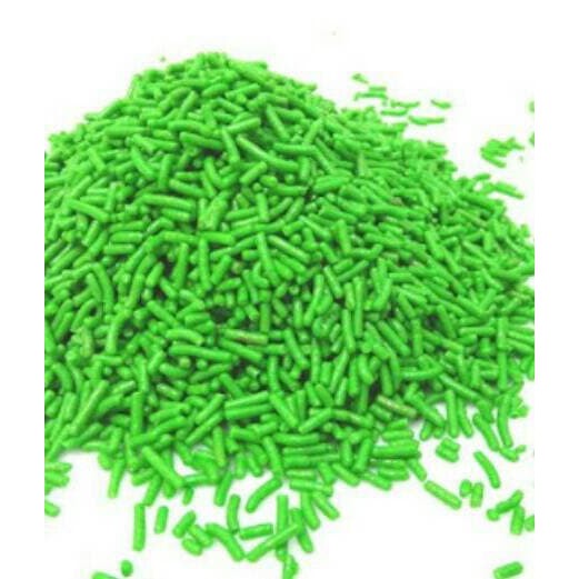 Coklat meses dengan warna hijau apple ,rasa tidak getir dan berkualitas.Digunakan untuk berbagai topping donat dan minuman.