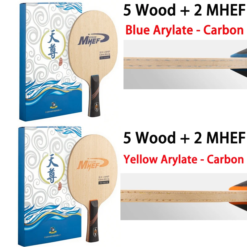 METEOR MHEF Table Tennis Blade Blue Yellow Built in High Elastic Fibers 7-Ply Ping Pong Racket Paddle Loop Fast Attack with Box
