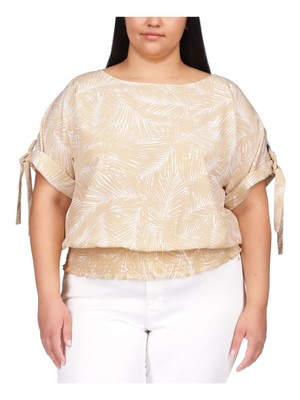 MICHAEL KORS Женский бежевый топ с завязками и манжетами и рукавами-лодочками с манжетами плюс