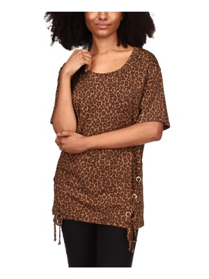 MICHAEL KORS Женский коричневый топ-туника с животным принтом и рукавами до локтя с круглым вырезом