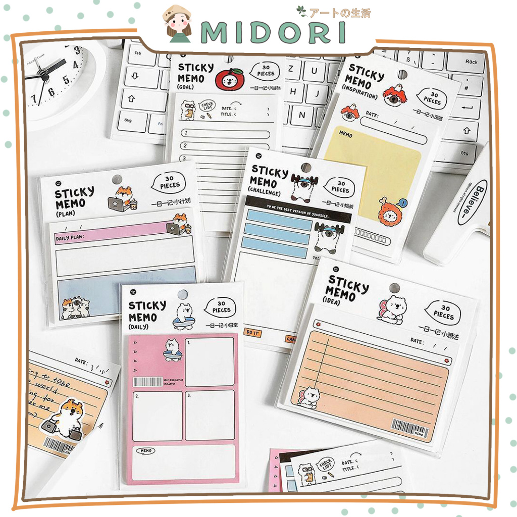 [MIDORI] 30Lembar STICKY MEMO PLAIN & LINE Lucu Sticky Notes Memo Note Paper Notepad - C0052