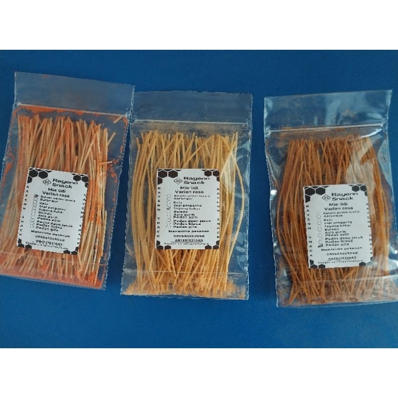 Mie lidi /mie biting jajanan jadul legendaris ,, cemilan kriuk2 satu ini sangat cocok untuk menemani aktifitas harimu,, harga bersahabat berkwalitas ,di jamin tidak bikin serik dan batuk karna kami menggunakan minyak terbaik,, dengan banyak pilihan rasa ,,. Bumbu aman tanpa bahan teksil
