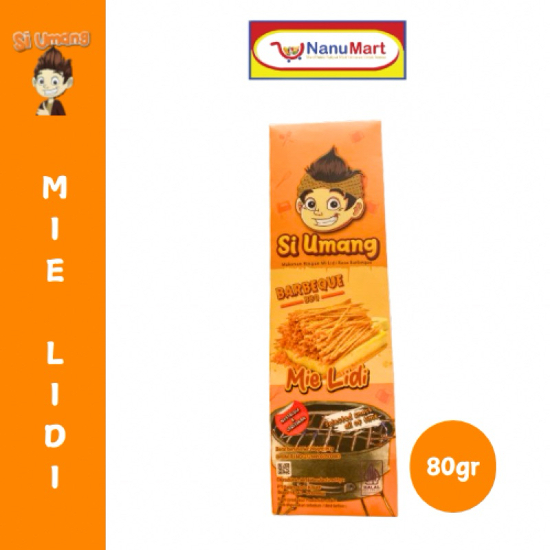 Mie Lidi Si Umang BBQ adalah jajanan legendaris dengan rasa gurih dan renyah khas mie lidi. Produk ini hadir dalam kemasan kertas panjang dengan varian rasa BBQ yang lezat, cocok untuk camilan kapan saja.