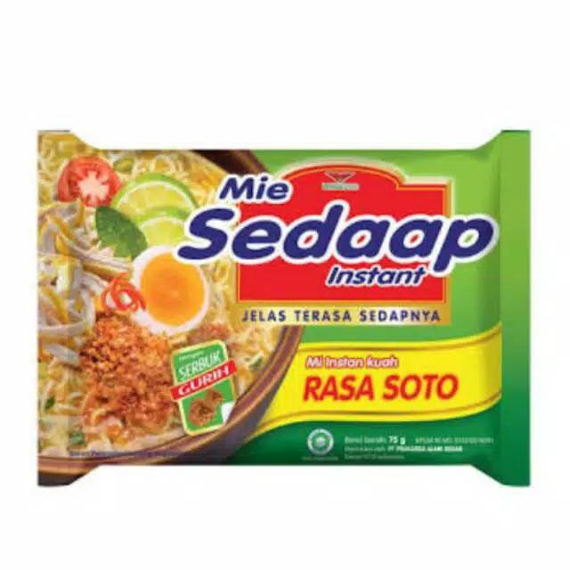 Mie Sedaap Soto merupakan salah satu varian dari Mie Sedaap yang diolah dengan bumbu lengkap dan rasa jeruk nipis segar. Diproduksi dan diproses secara higienis di bawah pengawasan ketat dari para ahli, Sedaap Mie Soto juga diperkaya 7 vitamin. Tekstur mienya yang lebih kenyal dan tidak cepat lunak, lengkap dengan tambahan serbuk gurih akan memberikan kenikmatan lebih di lidah Anda.