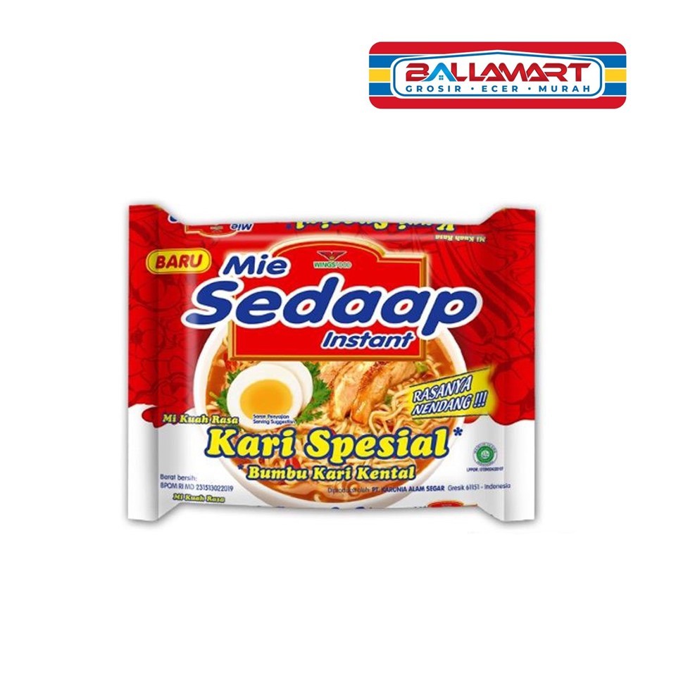 Mie sedaap makanan Instan, Mie yang diolah dengan bumbu kari yang gurih, Diproses secara higienis, Dengan tekstur mie yang kenyal dan tidak cepat lunak, Ideal di nikmati bersama keluarga saat cuaca dingin atau hujan.