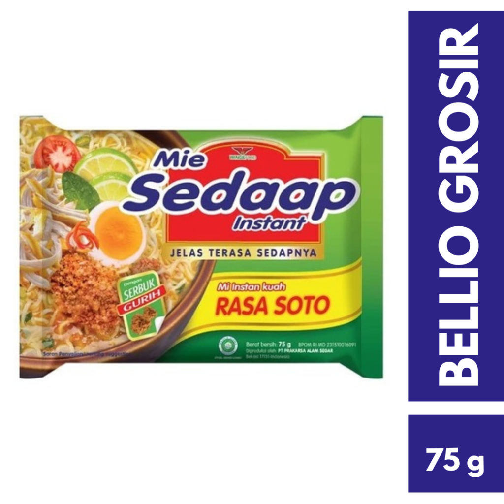 Sedaap Mie Soto merupakan salah satu varian dari Mie Sedaap yang diolah dengan bumbu lengkap dan rasa jeruk nipis segar Diproduksi dan diproses secara higienis di bawah pengawasan ketat dari para ahli Mie Sedaap Mie Soto juga diperkaya 7 vitamin Tekstur mienya yang lebih kenyal dan tidak cepat lunak lengkap dengan tambahan serbuk gurih akan memberikan kenikmatan lebih di lidah