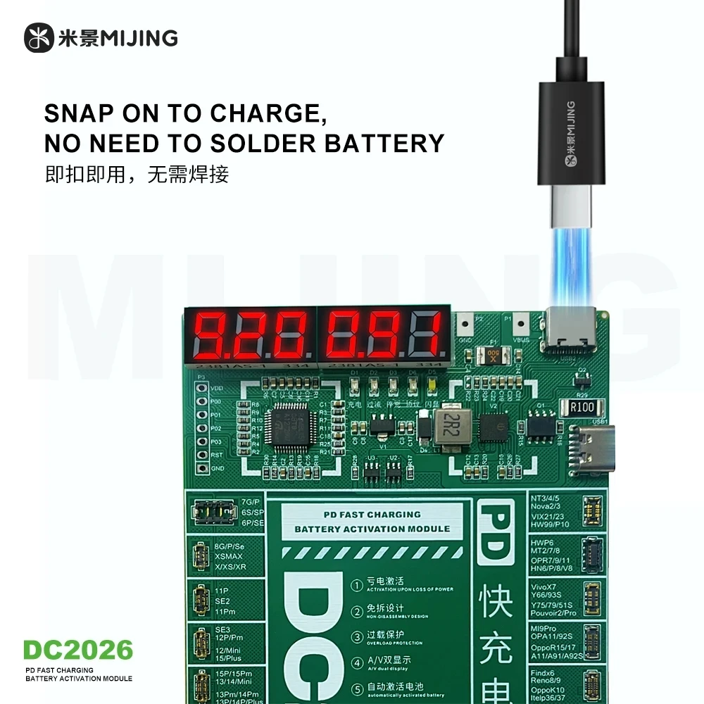 MIJING DC2026 Battery Activation Module PD Fast for iPhone 6S to 16 PM and 95% Android with Overload Protection Auto Power Off