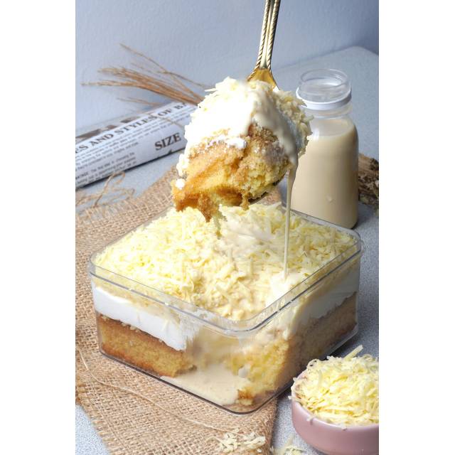 Dessert dengan siraman liquid susu + cheese yang melimpah , bikin nagih