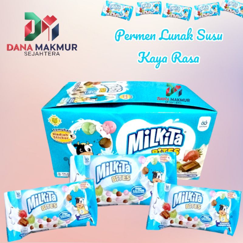Milkita Bites adalah permen susu enak berkalsium tinggi dengan berbagai macam rasa (Melon, Coklat, Strawberry) yang dibuat dengan susu sapi segar dari New Zealand sehingga baik untuk meningkatkan kecerdasan dan kreativitas anak.