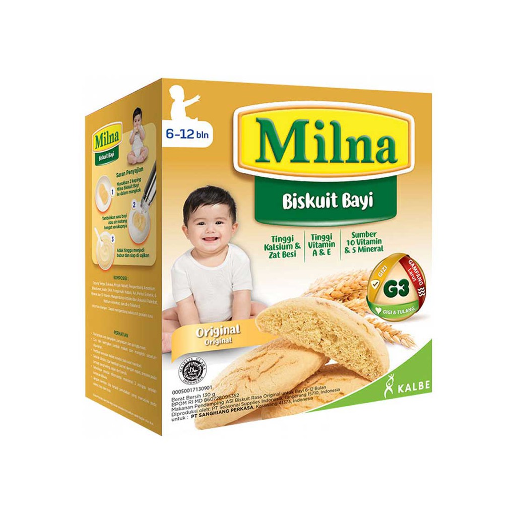 Milna Biskuit Bayi merupakan biskuit kaya gizi untuk usia 6-12 bulan sebagai makanan pendamping ASI pertama dengan tekstur lembut sehingga tidak mudah tersedak dan dapat menstimulasi pertumbuhan gigi Si Kecil agar tumbuh kembang lebih optimal.